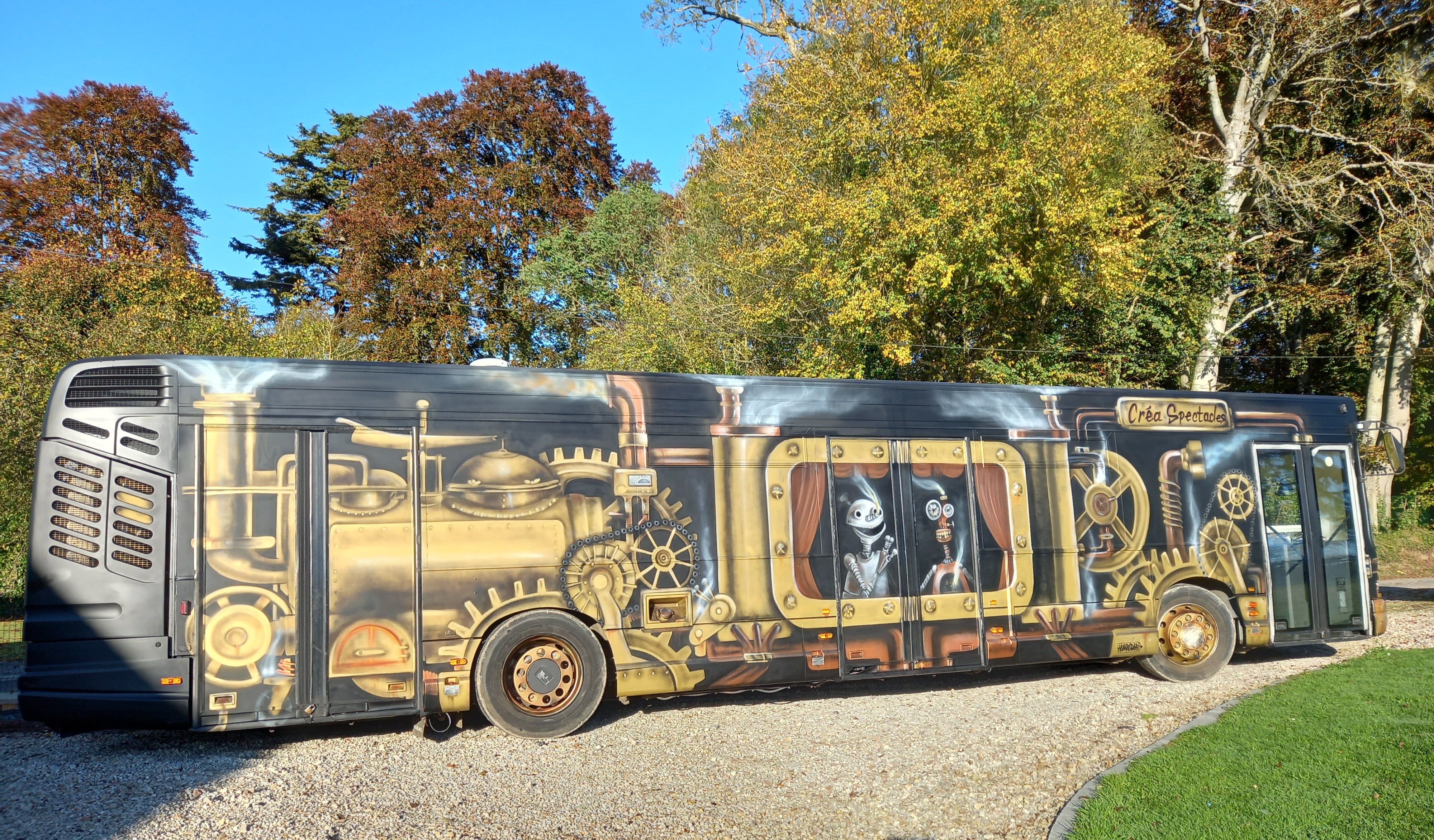 Comme mentionné ci-dessus, le bus-spectacle permet d’aller au-devant des publics et d’apporter la culture en tout lieu. Magnifiquement décoré, il attire la curiosité et crée l’événement dès son arrivée sur un lieu. Il est équipé d’une rampe d’accès pour les personnes à mobilité réduite et une boucle à induction magnétique va y être installée pour permettre aux personnes malentendantes d’assister aux spectacles.