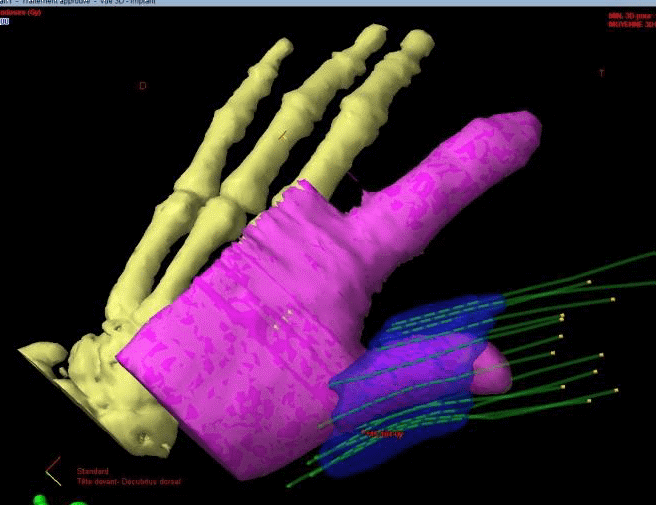 Exemple d'application à une tumeur localisée autour du pouce gauche :