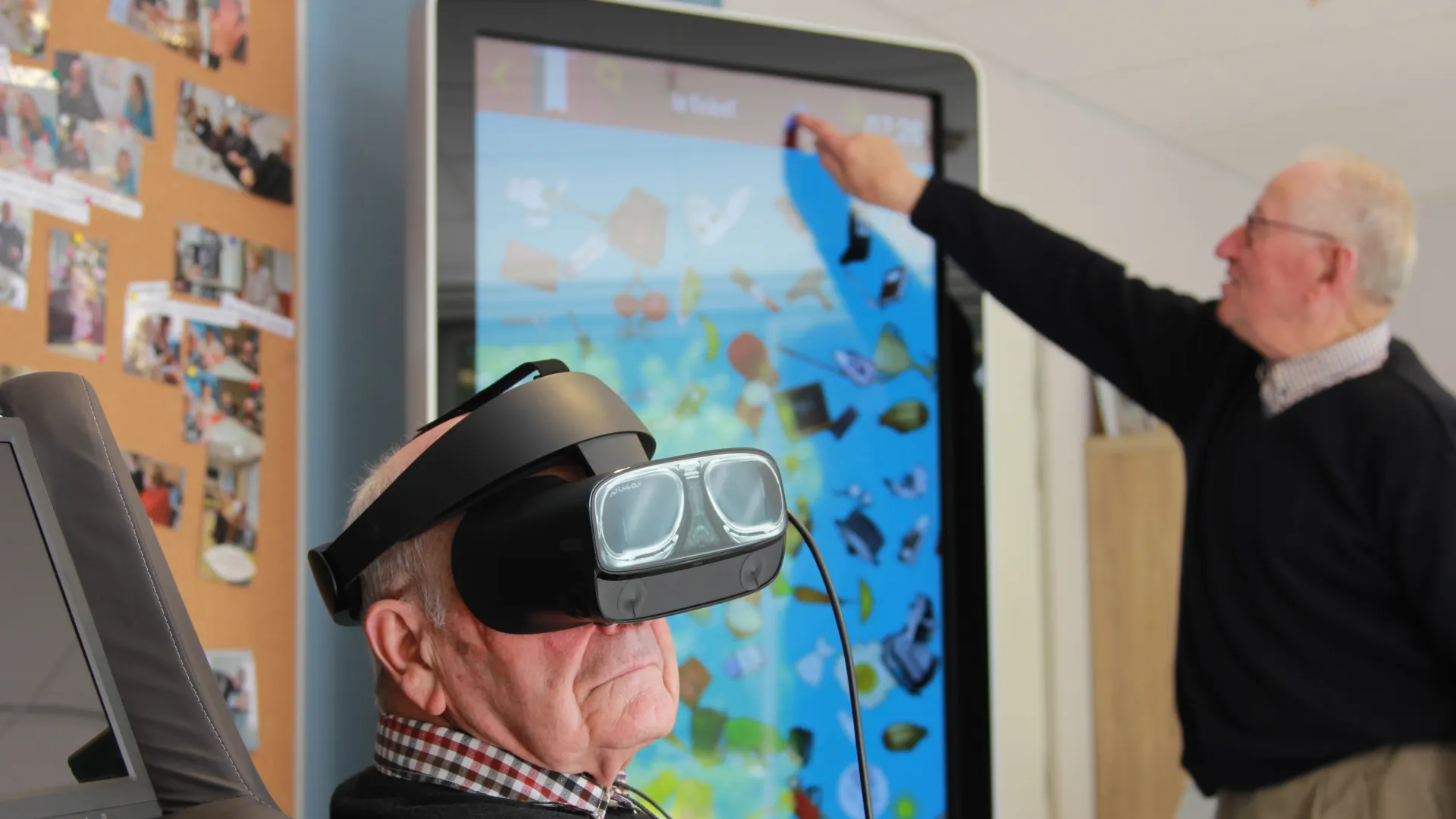 Notre public, souvent en perte de mobilité, bénéficie d’un panel d’offre de divertissements en réalité virtuelle pour se détendre et voyager autrement : une centaine d’expériences sensorimotrices et cognitives pour interagir, découvrir ou redécouvrir des lieux et sites remarquables : patrimoine national ou régional – balades nature – saut en parachute – chiens de traineaux - balade à Cracovie etc…