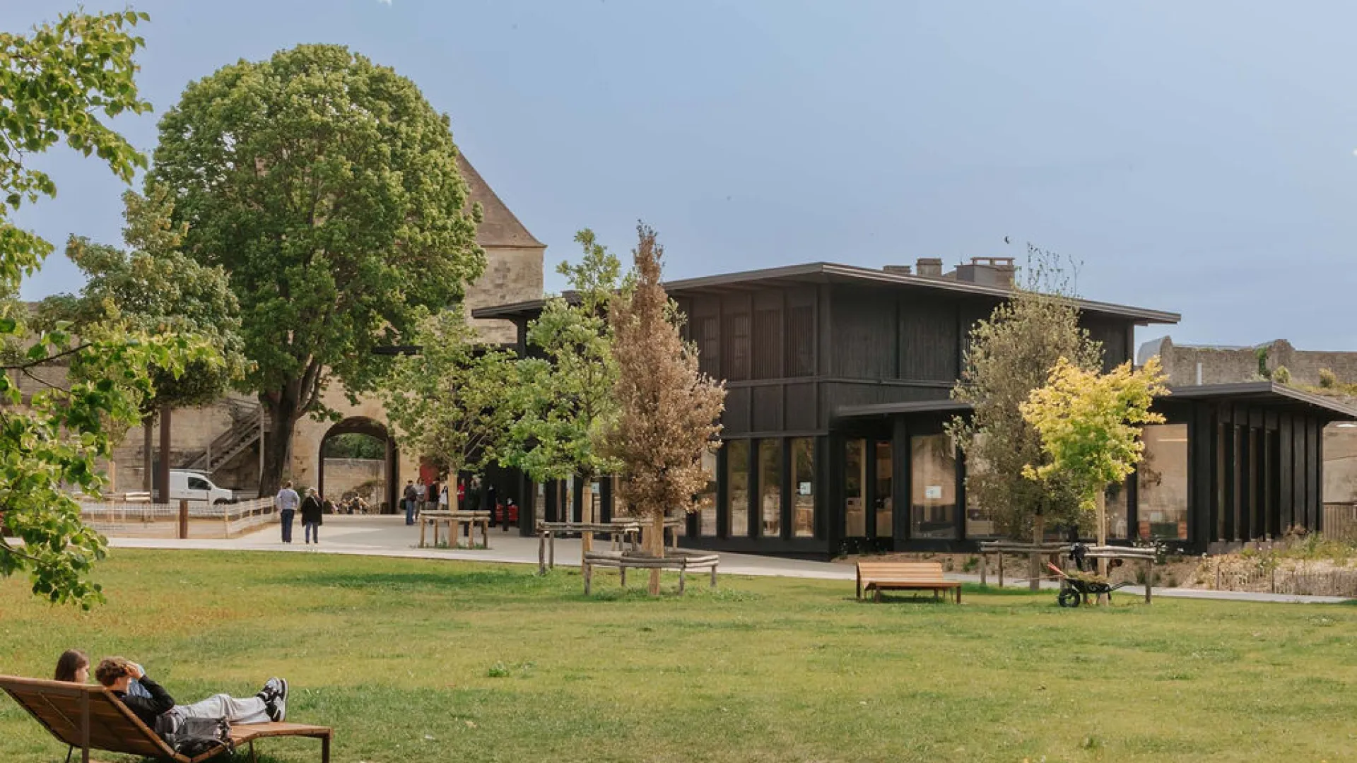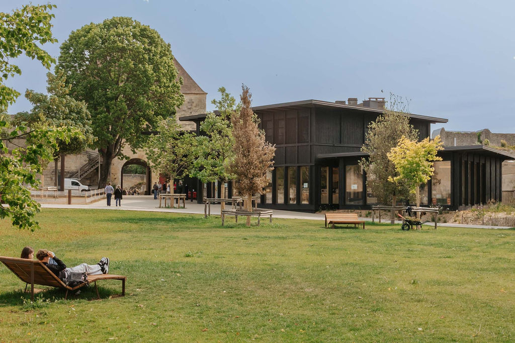 Le château dans ses murs est une opération de requalification du Château de Caen, site patrimonial majeur situé en coeur de ville, visant à créer un parc urbain de 4 hectares et un bâtiment d’accueil destiné à tous les publics. Le projet s’inscrit dans un schéma directeur engagé depuis 2000 et correspond à la deuxième phase de ce programme, dédiée à la réappropriation du site par les habitants. Il a permis de porter la part d’espaces verts aménagés de 43 % à 75 % du site, en supprimant les usages automobiles et en redéfinissant les cheminements vers les musées et les points d’intérêt patrimoniaux.