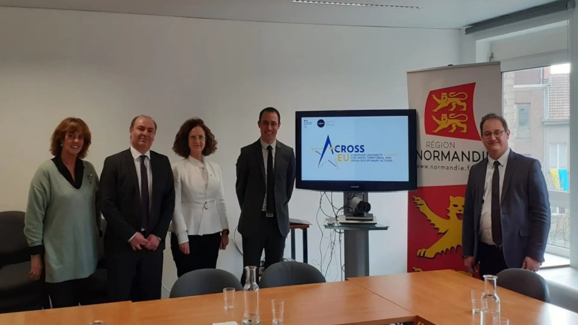 Lamri Adoui et Christophe Rochais, respectivement Président et Vice-Président en charge des Relations internationales de l’université de Caen Normandie, étaient présents à Bruxelles le 15 mars 2022 pour présenter le projet d’« université européenne » AcrossEU/European Alliance Project for Cross-Territorial and Cross-Disciplinary Actions qui sera déposé à l’appel à projets 2022 d’Erasmus+. Ils étaient accompagnés de François-Xavier Priollaud, Vice-Président de la Région Normandie en charge de l’Europe, de l’International et du rayonnement de la Normandie.
