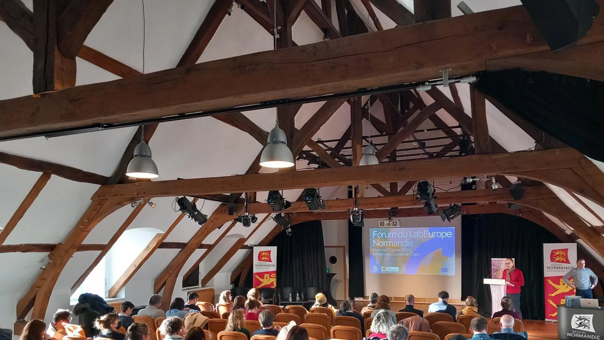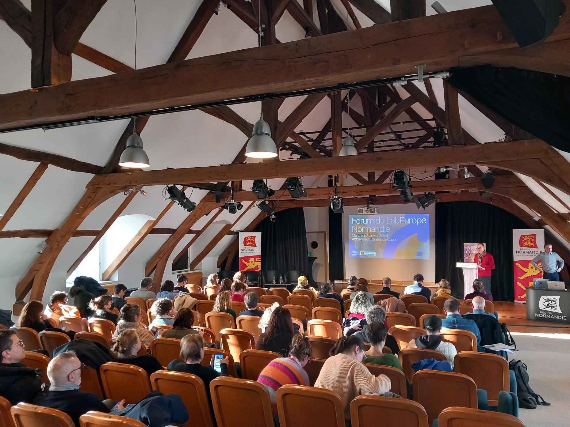 Le 7 janvier dernier, l’Abbaye aux Dames à Caen a accueilli la 3ᵉ édition du Forum du LabEurope Normandie, organisée par la Région Normandie et le Relais Culture Europe en partenariat avec plusieurs acteurs culturels régionaux (l’ODIA Normandie, Normandie Images, la Fabrique de Patrimoines en Normandie, NORMA, RENAR, RN13bis et Normandie Livre & Lecture). Cette journée, placée sous le signe des échanges et de la coopération, a réuni une soixantaine de professionnels du secteur culturel et créatif autour d’un enjeu : comment s’ouvrir à l’Europe et saisir les opportunités offertes par les programmes européens ?