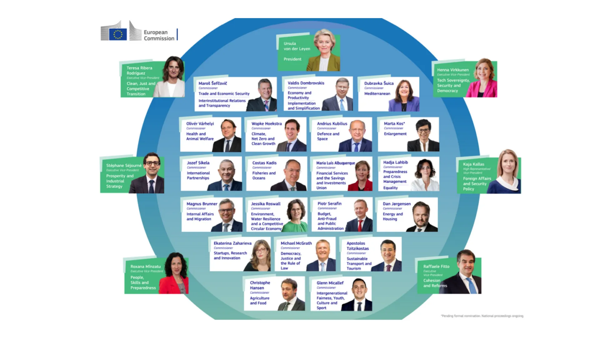 L’Italien Raffaele Fitto est proposé pour le poste de vice-président exécutif de la Commission en charge de la cohésion et des réformes. A ce titre, il aura d’une part sous son autorité le commissaire en charge de l’agriculture (le Luxembourgeois Christophe Hansen), le commissaire à la pêche et aux océans (le Chypriote Costas Kadis), et le commissaire en charge du transport et du tourisme (le Grec Apostolos Tzitzikostas), et d’autre part il détiendra en direct le portefeuille « politique de cohésion, développement régional et villes ». S’il est confirmé, il devra notamment concevoir la politique de cohésion post-2027, développer un agenda politique pour les villes, et contribuer à l’élaboration d’un plan européen pour le logement abordable
